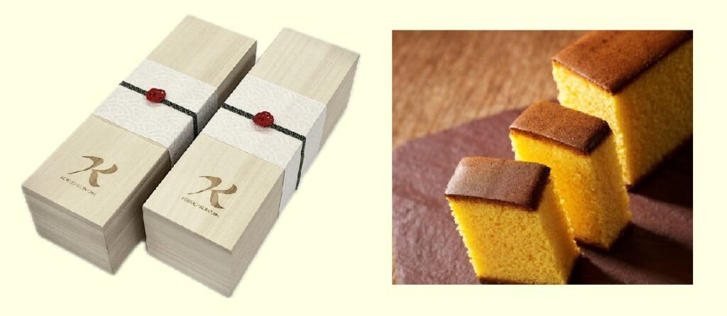 桐箱に國學院大學のKマーク刻印が入ったカステラです。しっとり感にこだわり、試行錯誤を重ね辿り着いた味わい。
